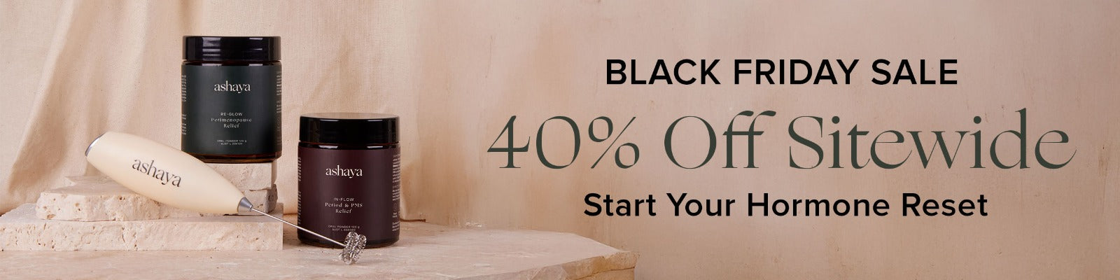Discover up to 40% off ashaya’s plant-powered hormonal rituals — from our best-selling In-Flow or Re-Glow supplements to our nourishing face and body oils.